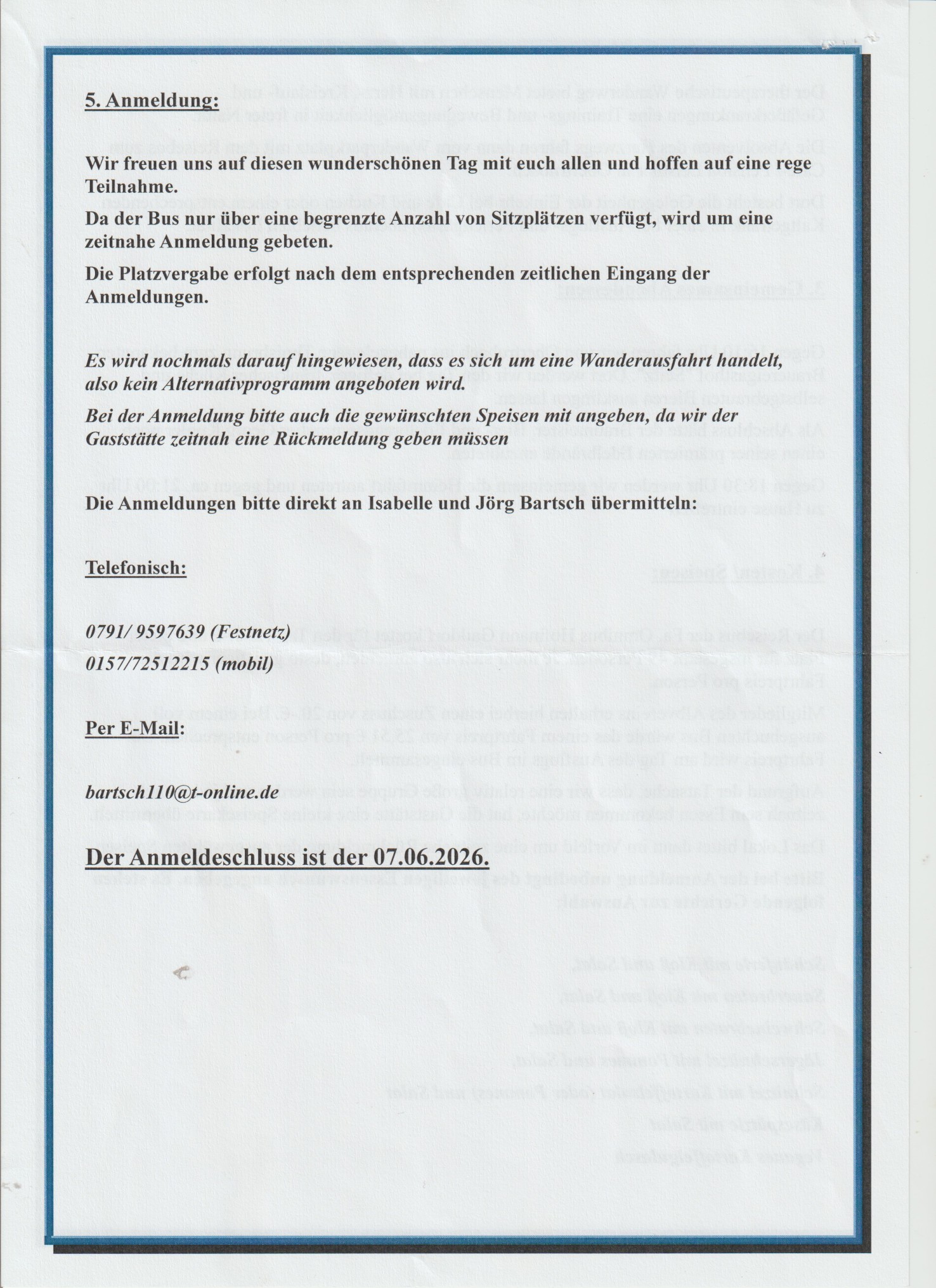 Info und Anmeldung bei Jörg Bartsch – Tel. 0791 9597639